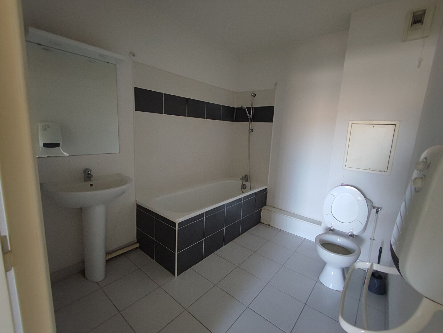 Une grande chambre, une salle de bain .